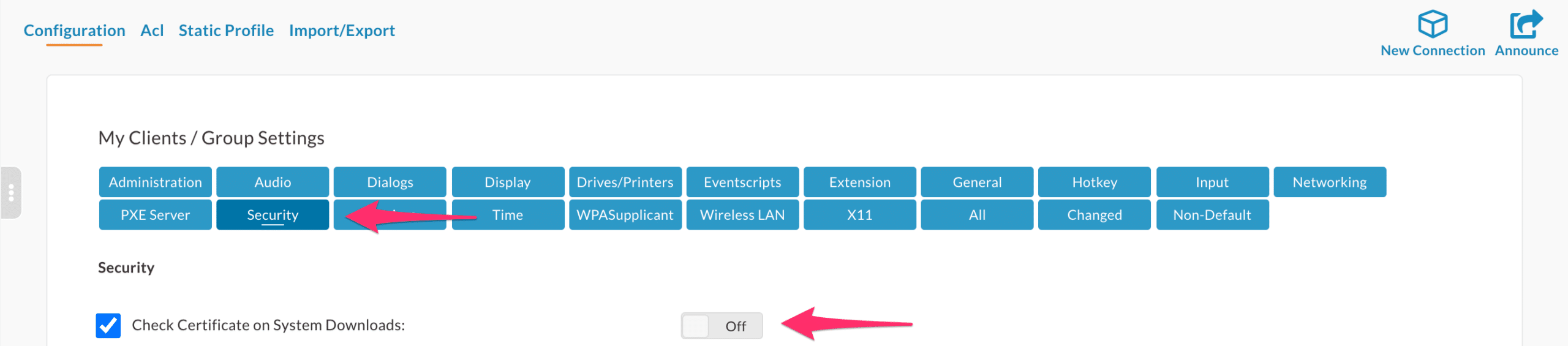 Step 4: If your NoTouch Center instance is using a self-signed certificate, ensure that ‘Check Certificates on System Downloads’ is turned off.