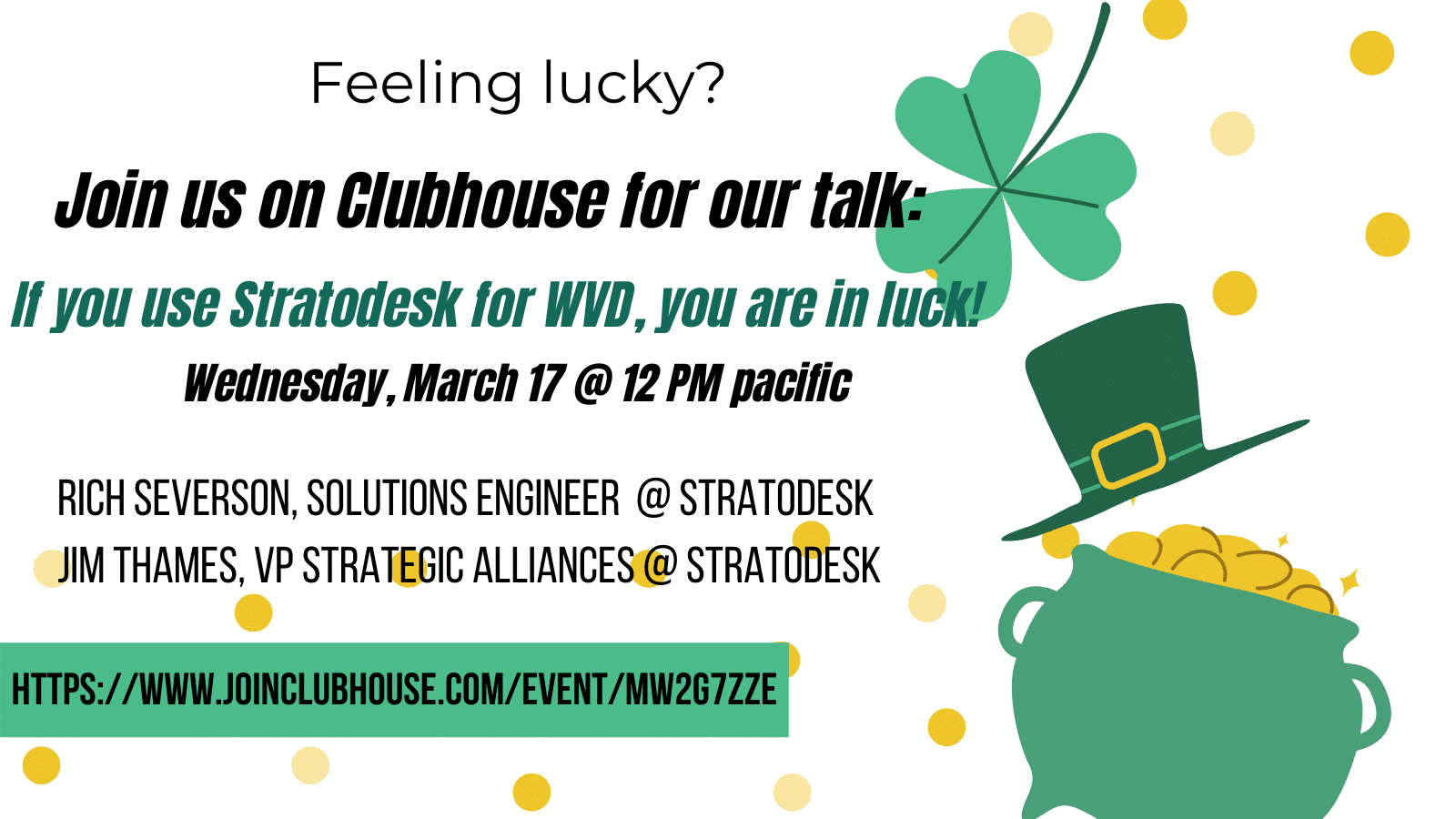 In honor of St. Patrick’s Day – join us for a five o’clock somewhere chat about why you should use Stratodesk software for your Windows Virtual Desktop deployment!